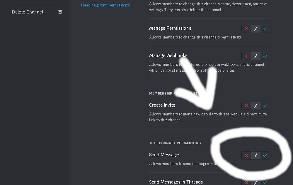 make sure the all channel permission of all channels are in idle mode as show in the image